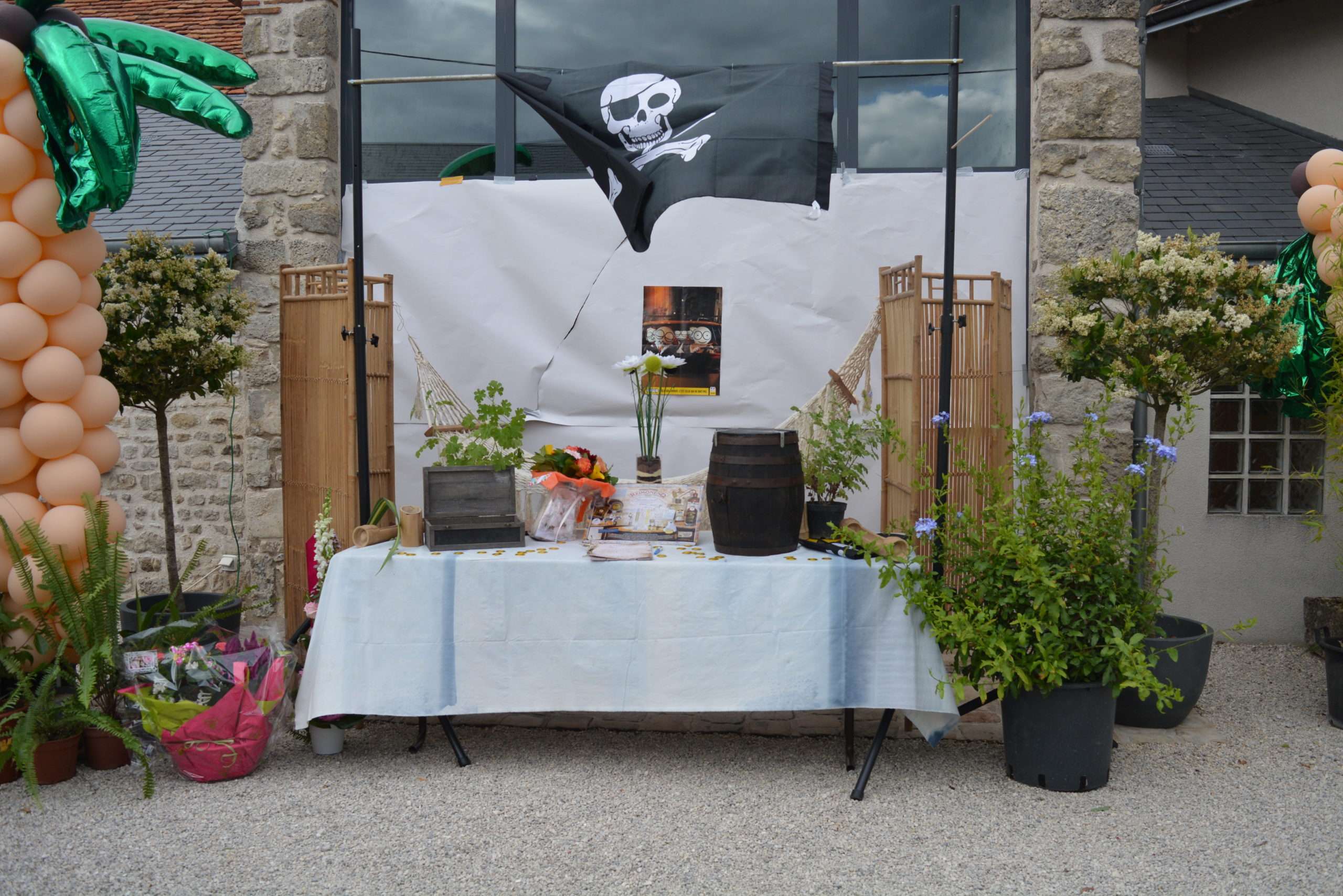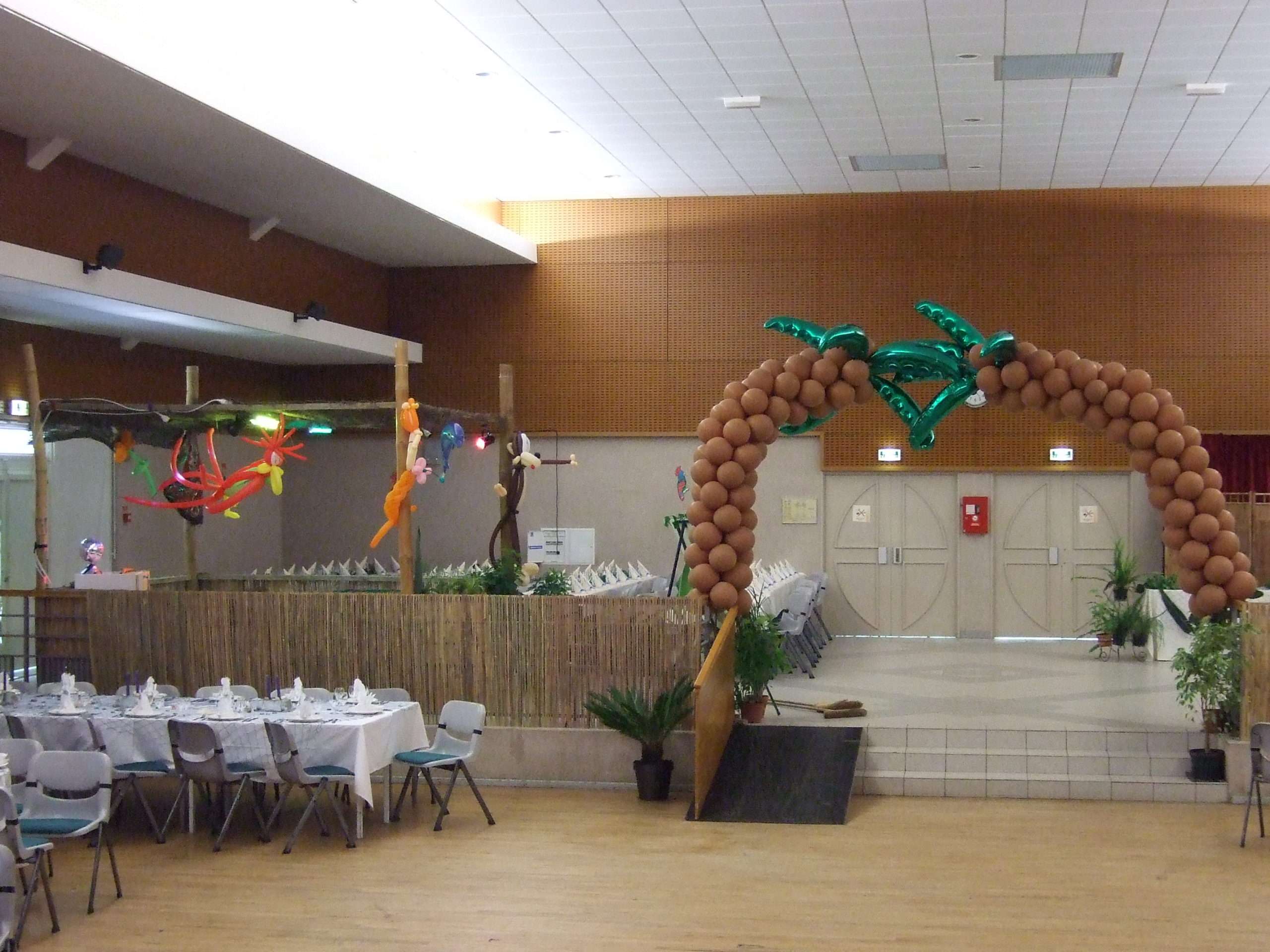 Une déco consacrée entièrement aux îles et tropiques; palmiers, soleil, animaux… gonflables.