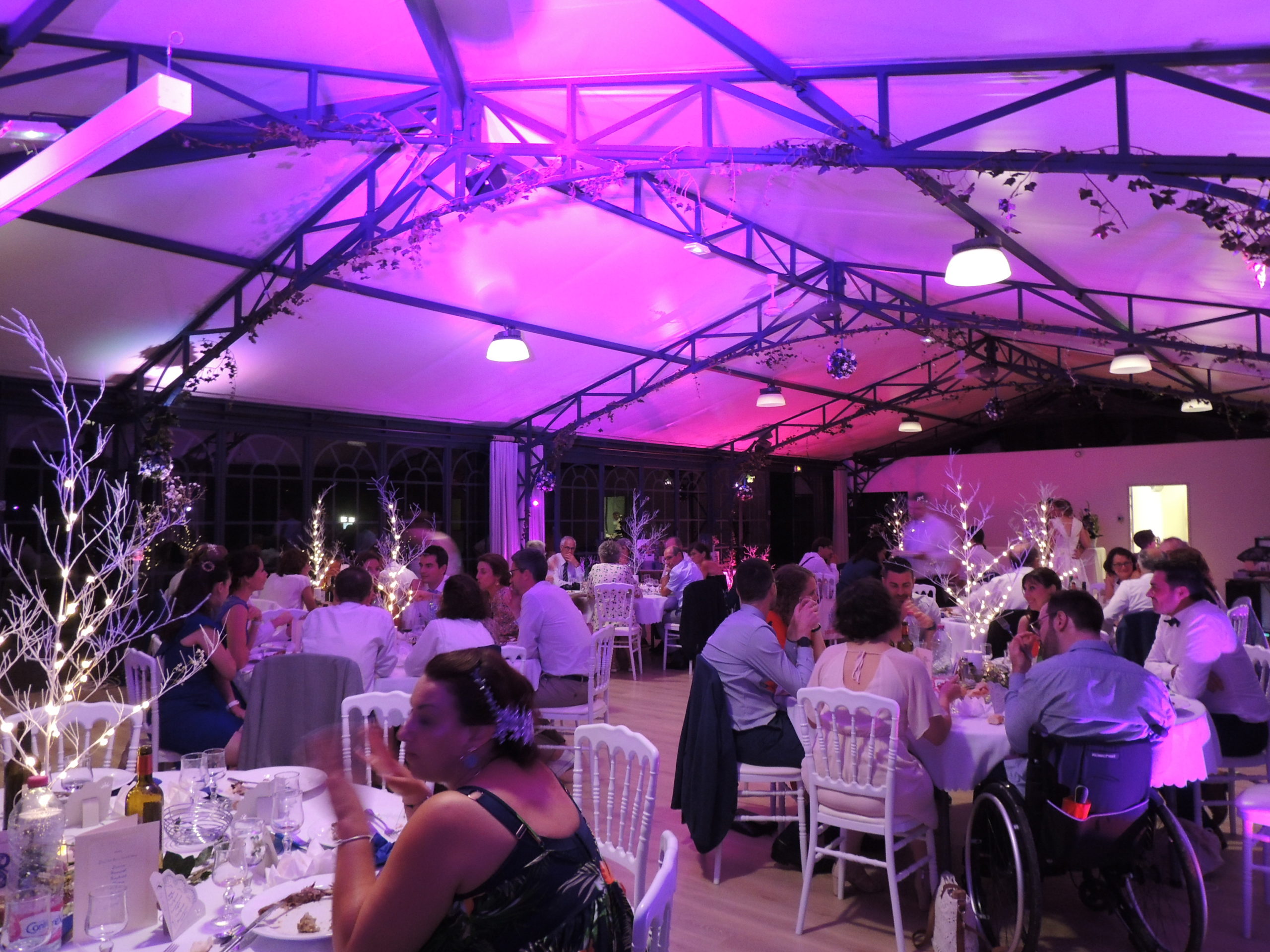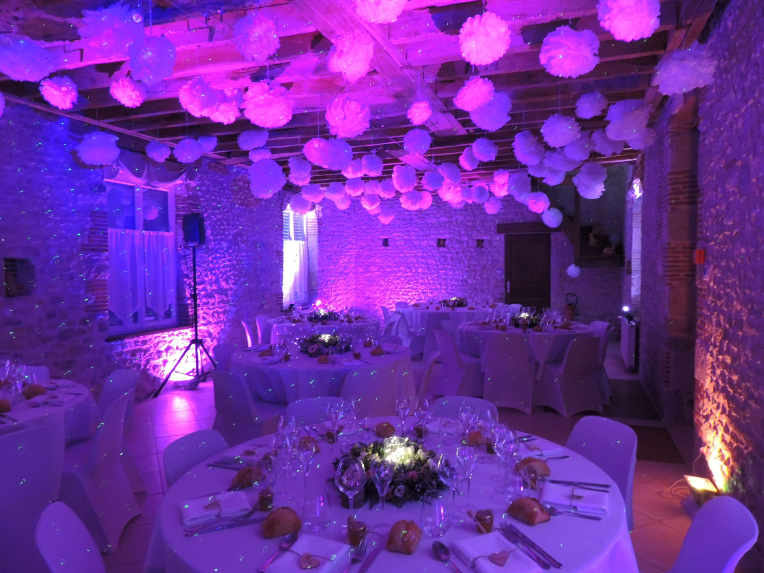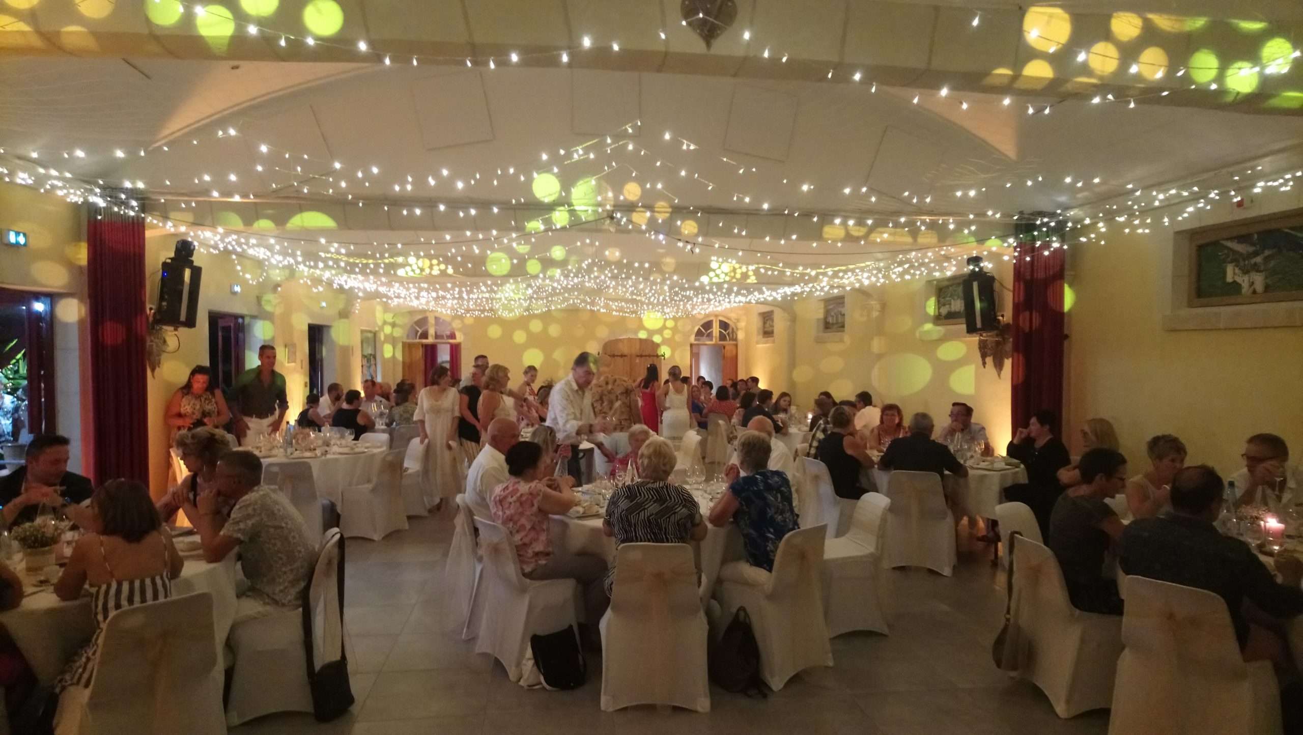 Sonorisation et éclairage professionnels, ajustés à la taille et à l’ambiance de votre soirée.