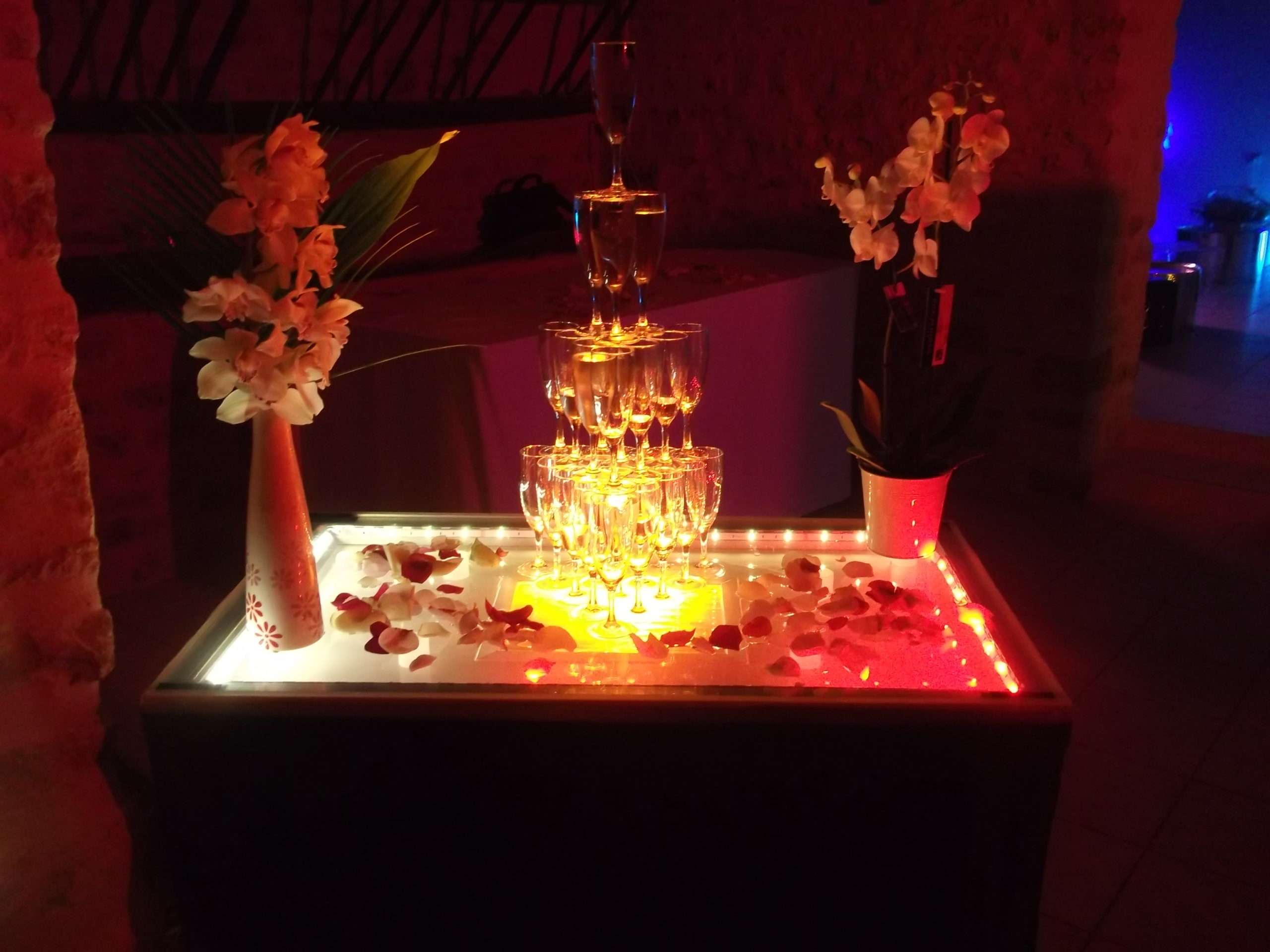 Décoration simple; flo Lumière Intégrale ; on utilise que nos lumières pas celle de la salle (possible enorale, banderoles, guirlandes… devis sur demande.